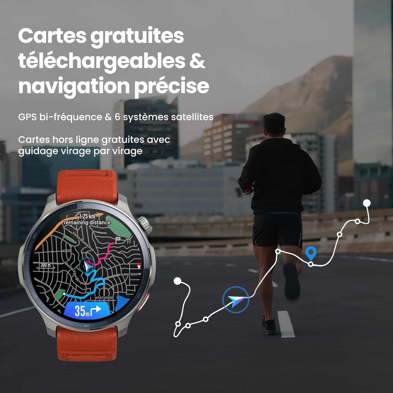 Oui, la montre intรจgre un GPS avec plusieurs systรจmes de positionnement combinรฉs : GPS, GLONASS, GALILEO, BEIDOU, QZSS et NAVIC, garantissant une trรจs bonne prรฉcision pour les activitรฉs outdoor.