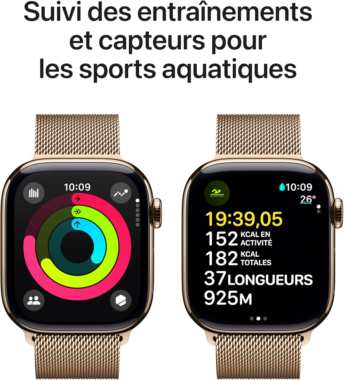 Quels sports et activitรฉs l’Apple Watch Series 10 42mm (GPS + Cellular) – Titane Or, Bracelet Milanais Or peut-elle tracker ?