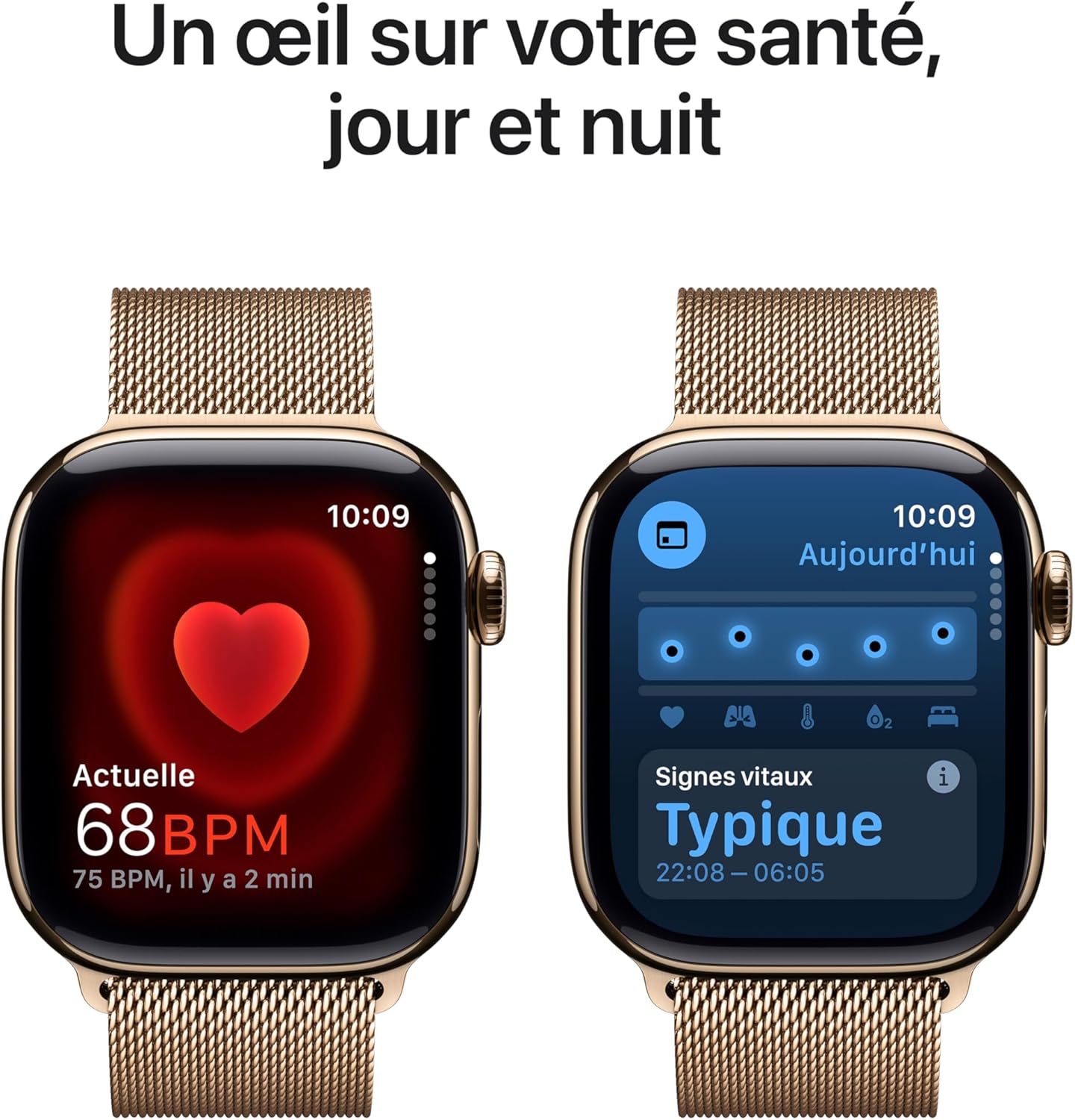 Quelles sont les fonctionnalitรฉs de santรฉ proposรฉes par l’Apple Watch Series 10 42mm (GPS + Cellular) – Titane Or, Bracelet Milanais Or ?