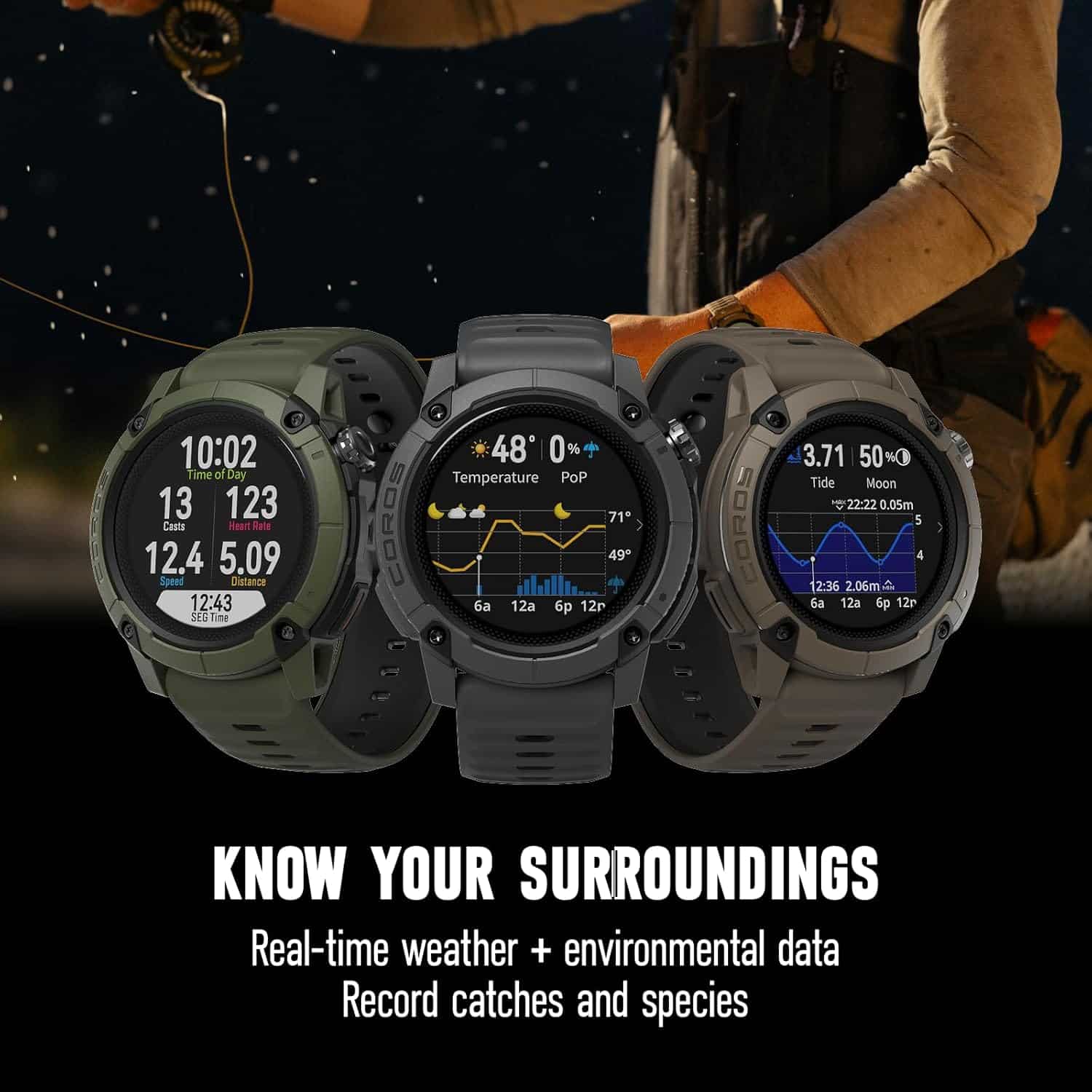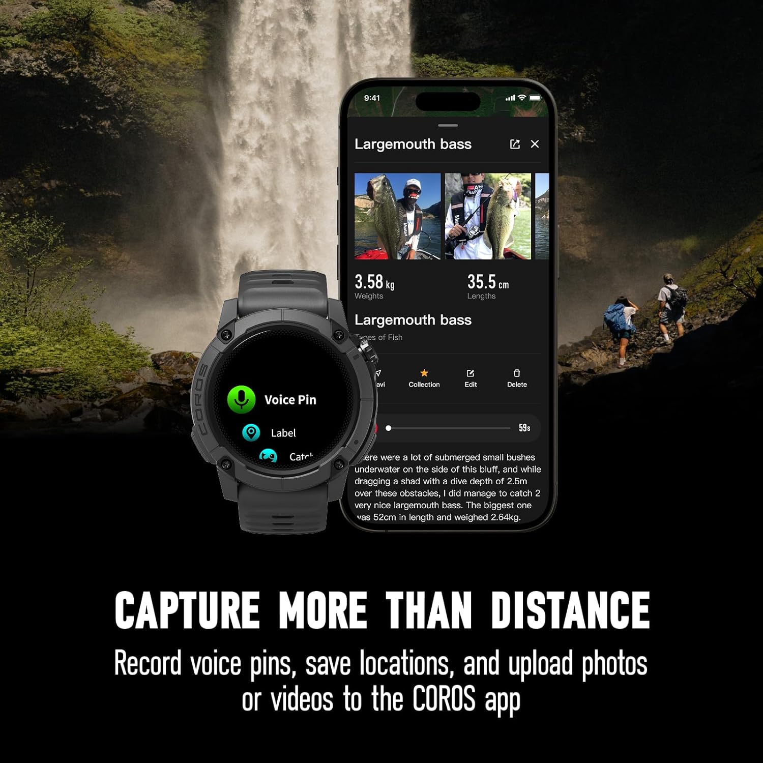 La COROS Nomad Gris foncé couvre au moins 14 sports différents tels que la course à pied, trail, randonnée, cyclisme, natation, triathlon, ski, alpinisme, pêche, musculation, cardio-training, et plus, avec des métriques dédiées pour chacun.