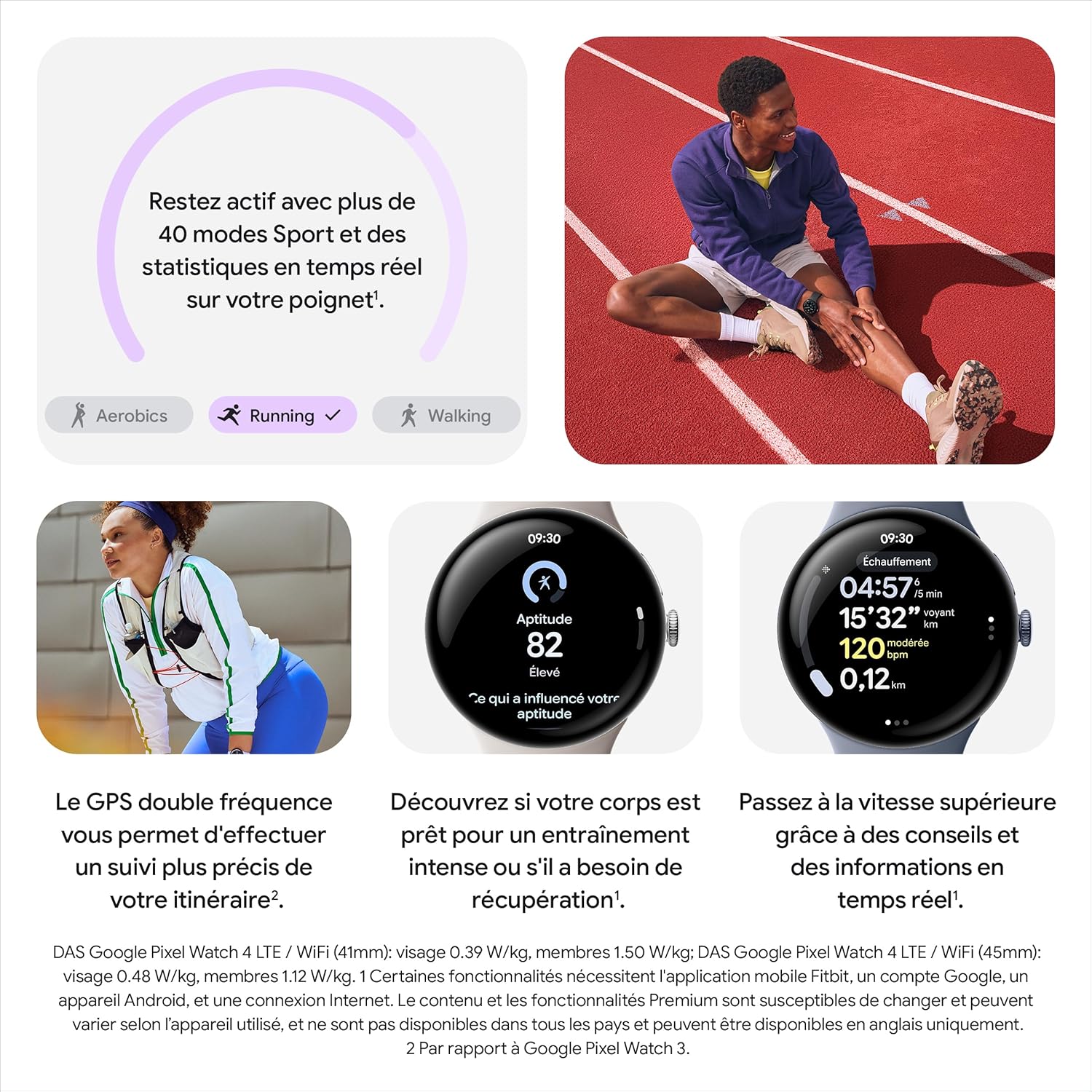 Quelles sont les capacitรฉs de suivi sportif de la Google Pixel Watch 4 41mm Noir Mat / Noir Volcanique ?