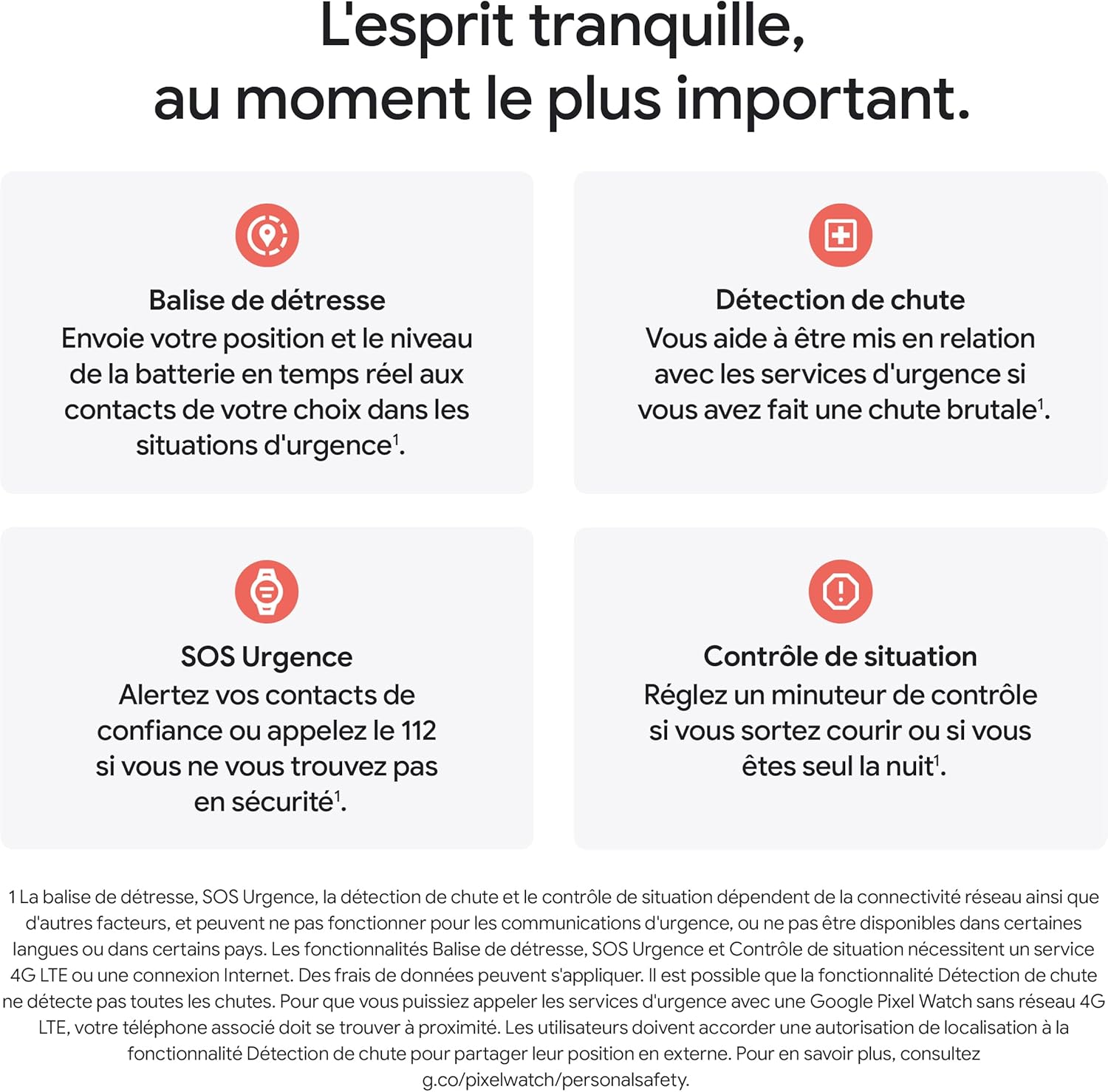 La Google Pixel Watch 4 41mm Noir Mat / Noir Volcanique dispose de capteurs de santรฉ complets : mesure de la frรฉquence cardiaque, saturation en oxygรจne (SpO2), suivi du stress, respiration guidรฉe, analyse du sommeil, dรฉtection des chutes, tempรฉrature corporelle et suivi du cycle menstruel[4]. Elle intรจgre รฉgalement une dรฉtection de perte de pouls comme fonctionnalitรฉ additionnelle de sรฉcuritรฉ avancรฉe. Tous ces capteurs contribuent ร vous fournir une vision globale de votre รฉtat de santรฉ quotidien.