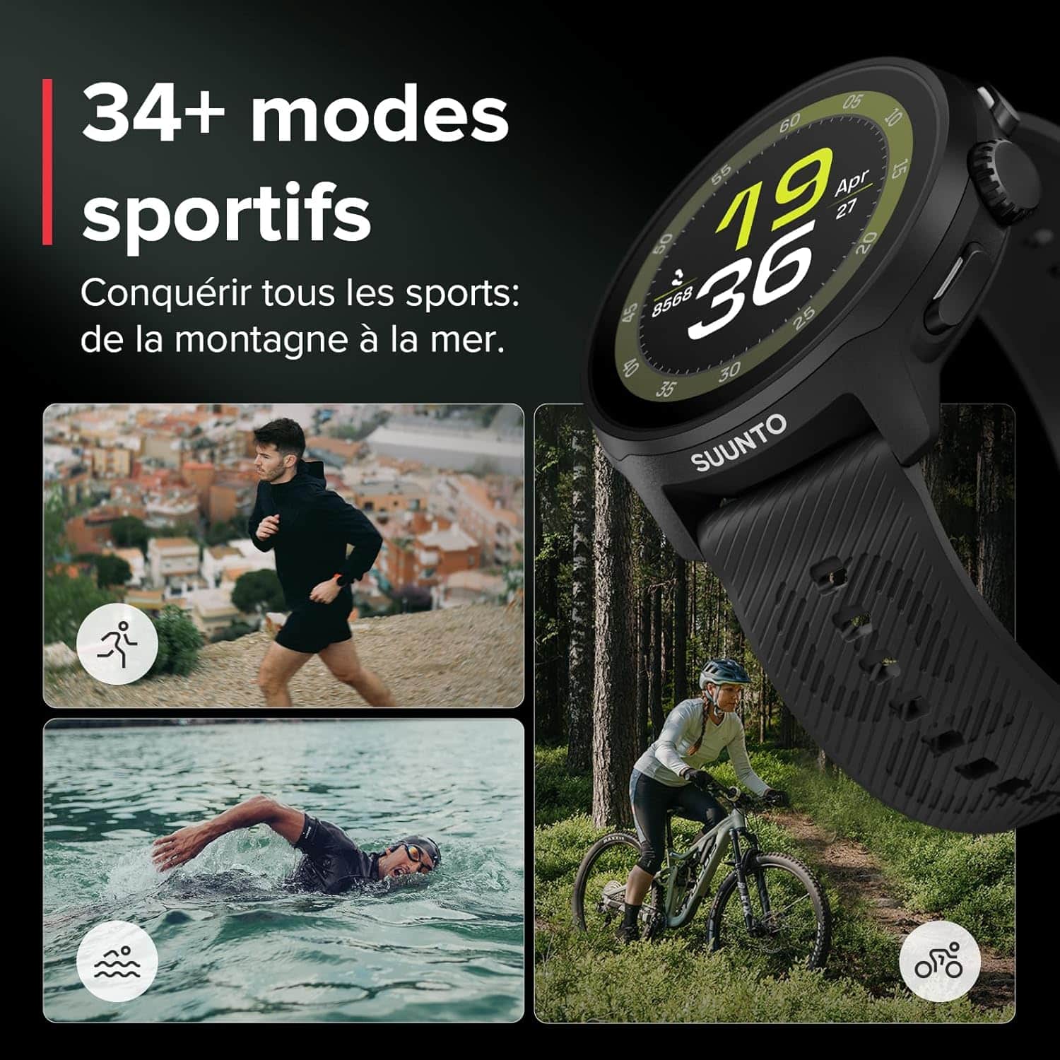 La Suunto Run 46mm All Black supporte 13 modes sportifs distincts : course ร pied, cyclisme, natation, randonnรฉe, yoga, tennis, boxe, triathlon, marche, ski, golf, musculation et fitness. Cette diversitรฉ de modes d’entraรฎnement en fait une montre polyvalente adaptรฉe non seulement aux coureurs mais aussi aux athlรจtes pratiquant plusieurs disciplines, ce qui enrichit le suivi d’activitรฉs par rapport aux montres spรฉcialisรฉes. Chaque mode intรจgre des mรฉtriques spรฉcifiques au sport considรฉrรฉ, notamment le suivi GPS prรฉcis pour les activitรฉs en extรฉrieur et la dรฉtection automatique des sรฉquences d’entraรฎnement.